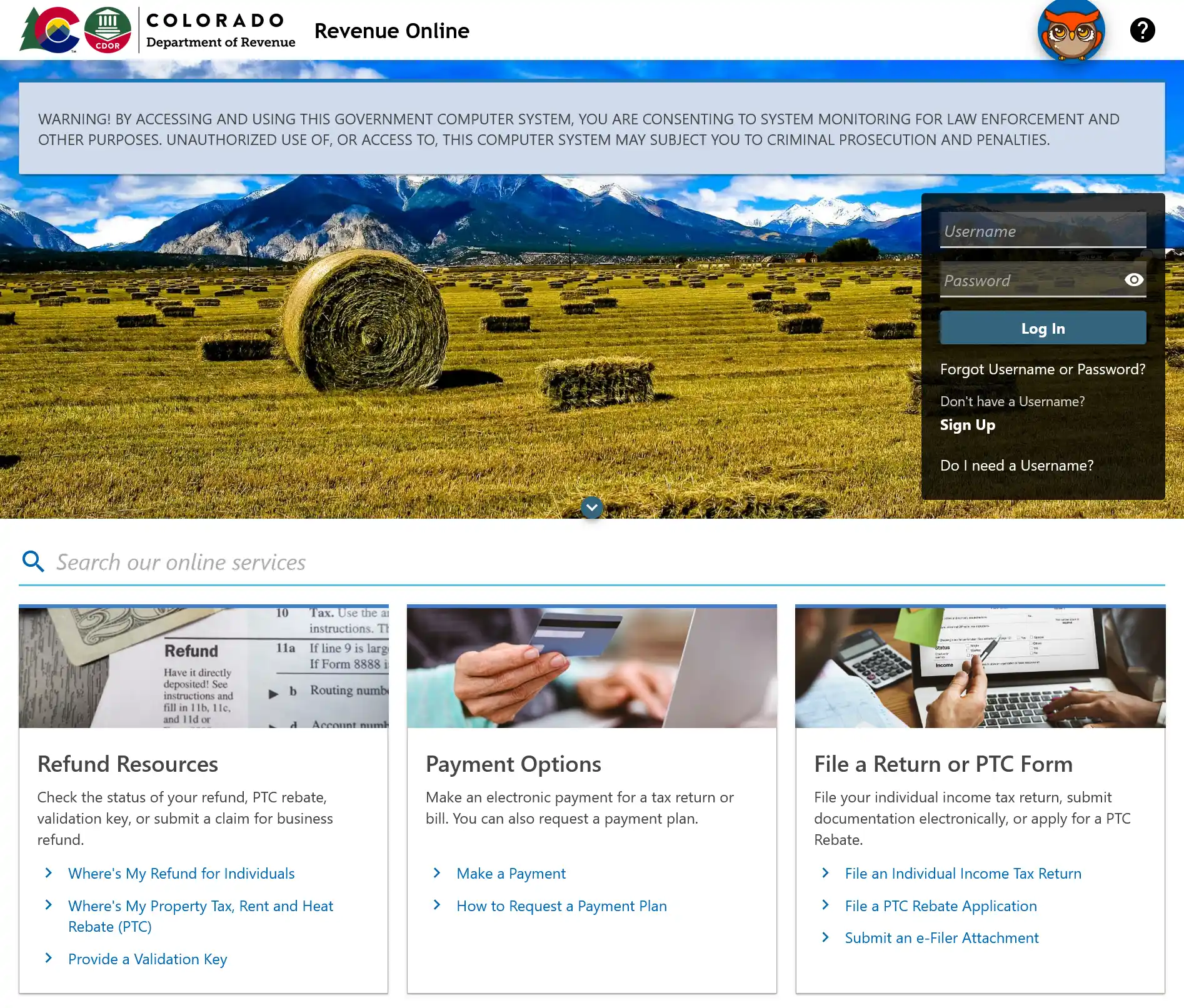 You can check the status of your Colorado tax refund 24/7 online by visiting https://www.colorado.gov/revenueonline
